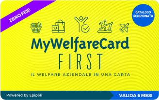 Scopri MyWelfareCard First, la prima proposta del nostro catalogo welfare. Questa carta digitale è pensata per erogare i fringe benefit in modo semplice e veloce, offrendo ai datori di lavoro i vantaggi fiscali previsti dalla Legge di Bilancio. Cumulabile, scalabile e convertibile nelle Gift Card dei grandi marchi, è lo strumento ideale per offrire ai dipendenti un ampio catalogo con numerose categorie e una vasta selezione dei migliori brand. La carta ha una validità di 6 mesi e viene venduta al valore facciale, senza fee aggiuntive.